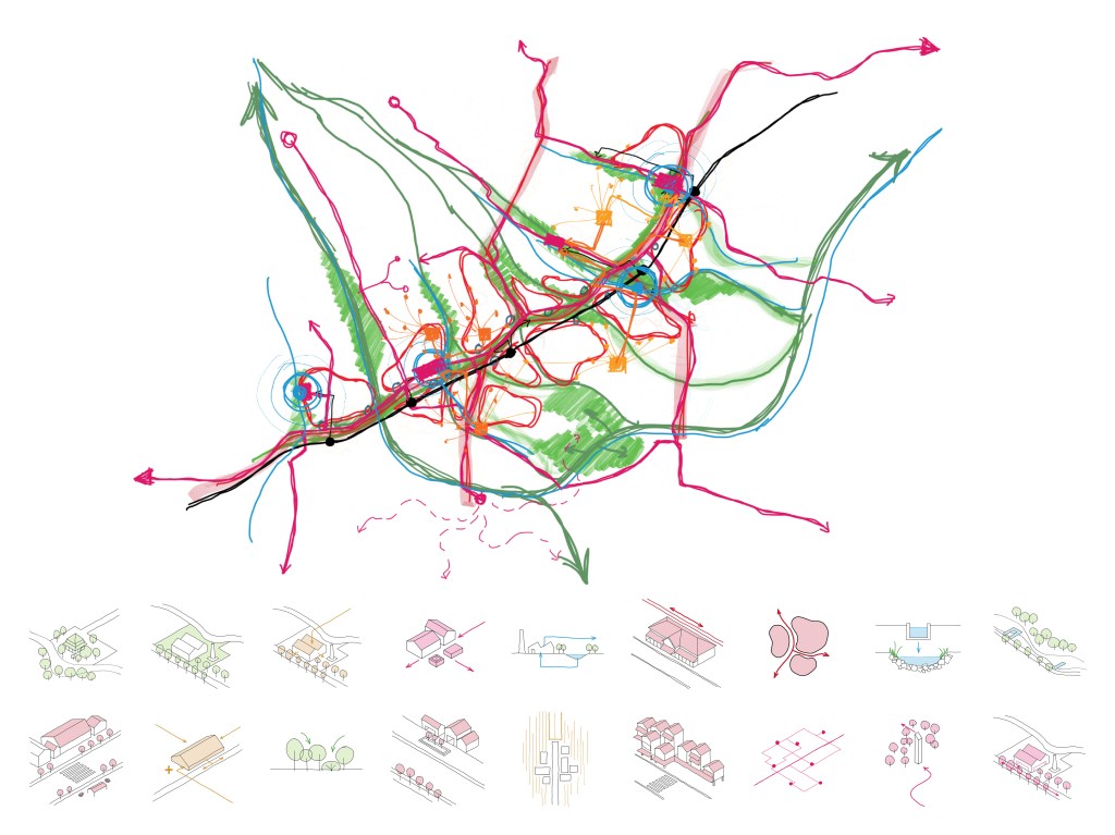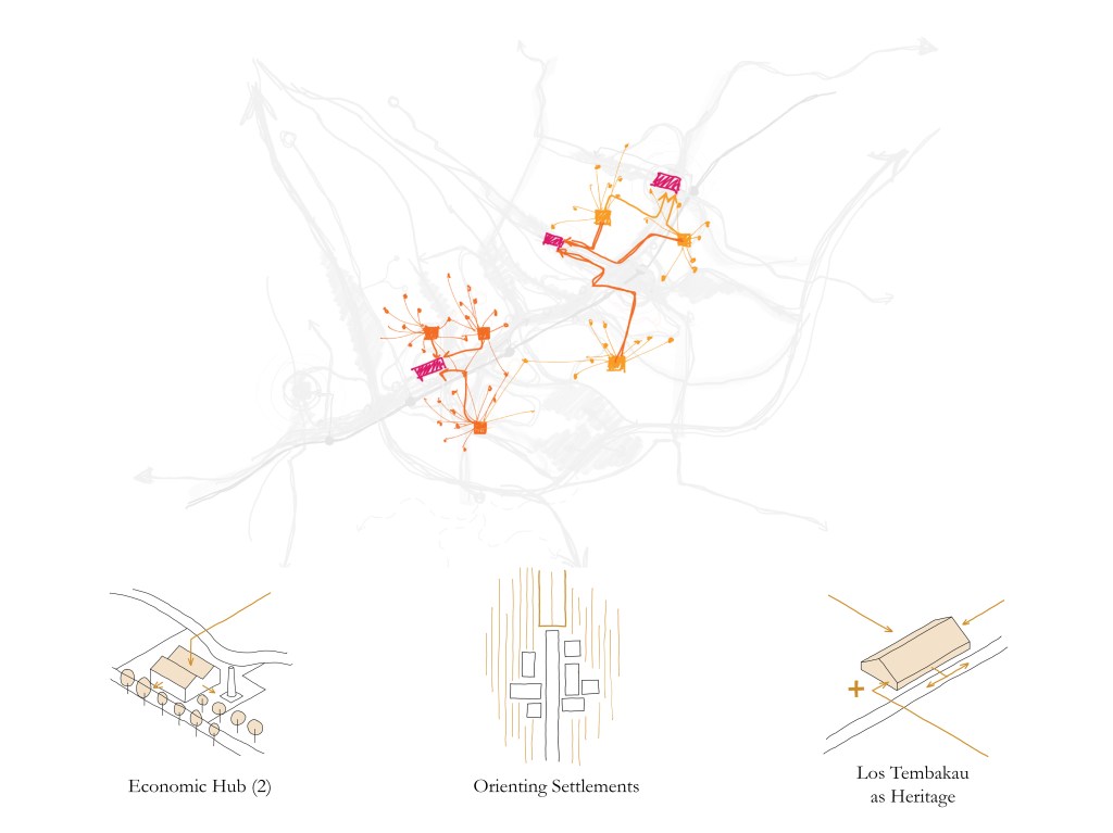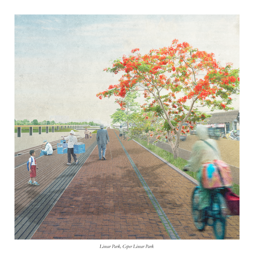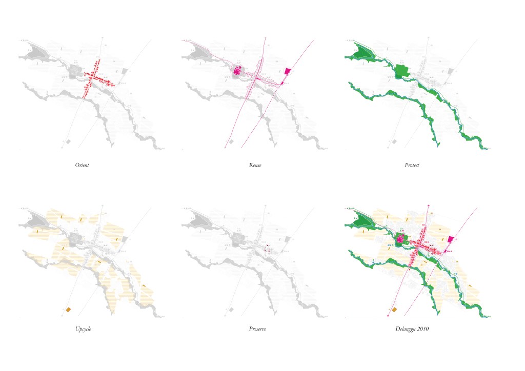 Four different strategies are implemented namely: Orienting density, blue-green infrastructure, connecting economies, and upscaling agriculture. The large scale strategy is then tested in 2 different zoom in designs. In the end, the plan for the 2050 Klaten is a roadmap alternative of the region, to envisage a sustainable region in between.